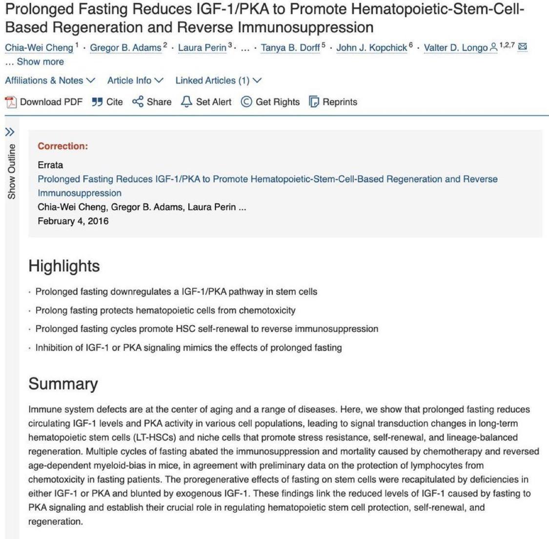A 2014 USC study showed 72-hour fasts triggered stem cell-based regeneration of white blood cells, essentially rebooting the immune system.