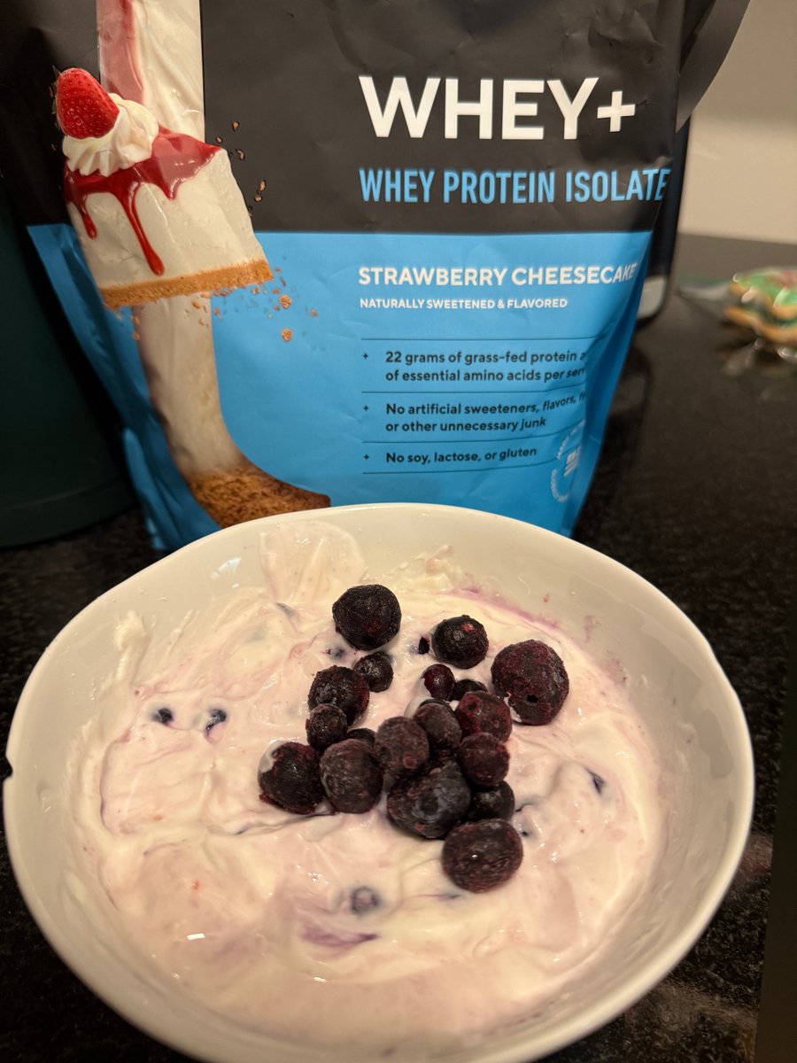 -1 scoop whey protein of choice (strawberry cheesecake)