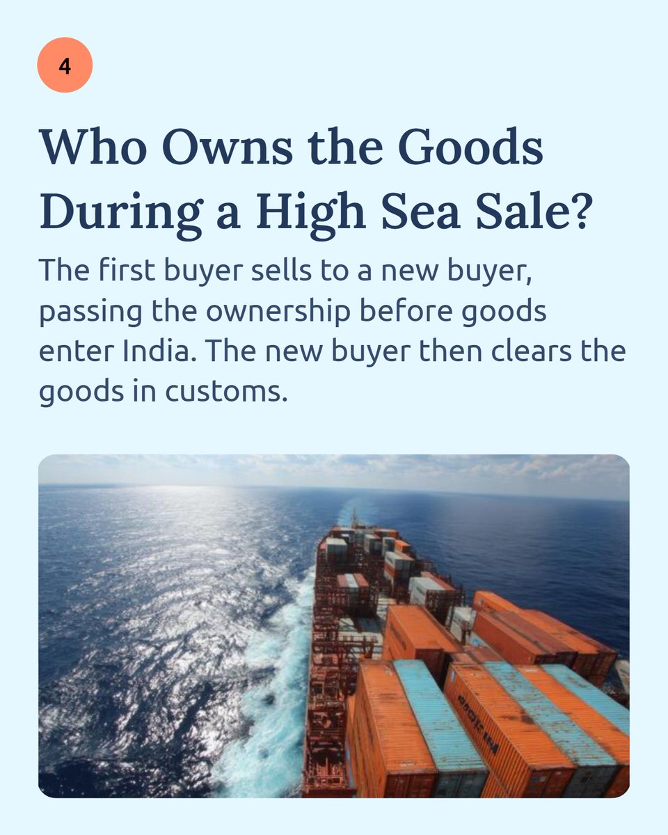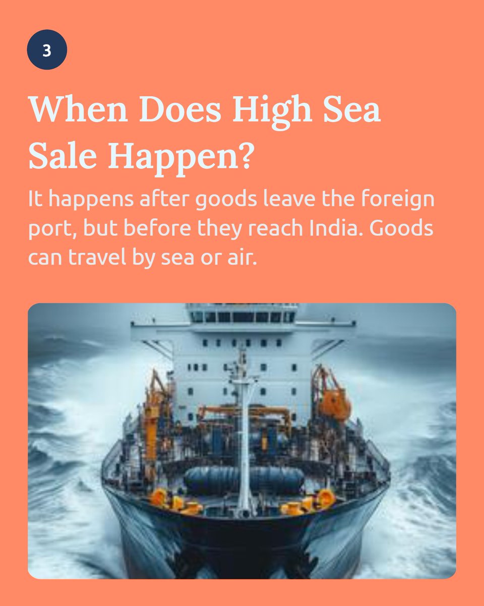 A High Sea Sale (HSS) is when goods are sold while still on the high seas, before they arrive at an Indian port and before customs clearance.
