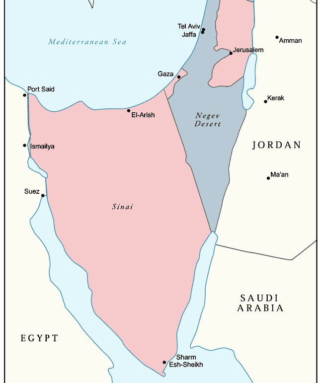 Unlike Gaza and the West Bank, Sinai was returned to Egypt after a peace treaty in 1979.