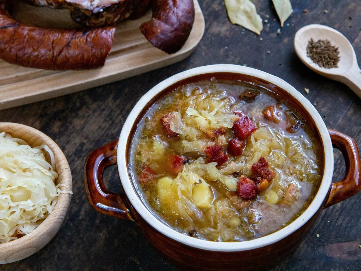 From the Tatra highlands, made with sauerkraut and smoked meats. Different from kapuśniak: sharper, thinner, more rustic. Traditionally eaten by shepherds in Podhale.