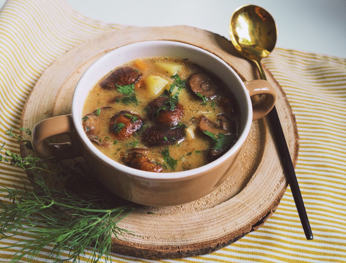 Forest mushroom soup, often served on Christmas Eve. Mushrooms were a sacred food in Slavic paganism, and the tradition carried into Christian ritual meals.