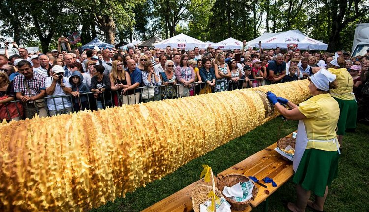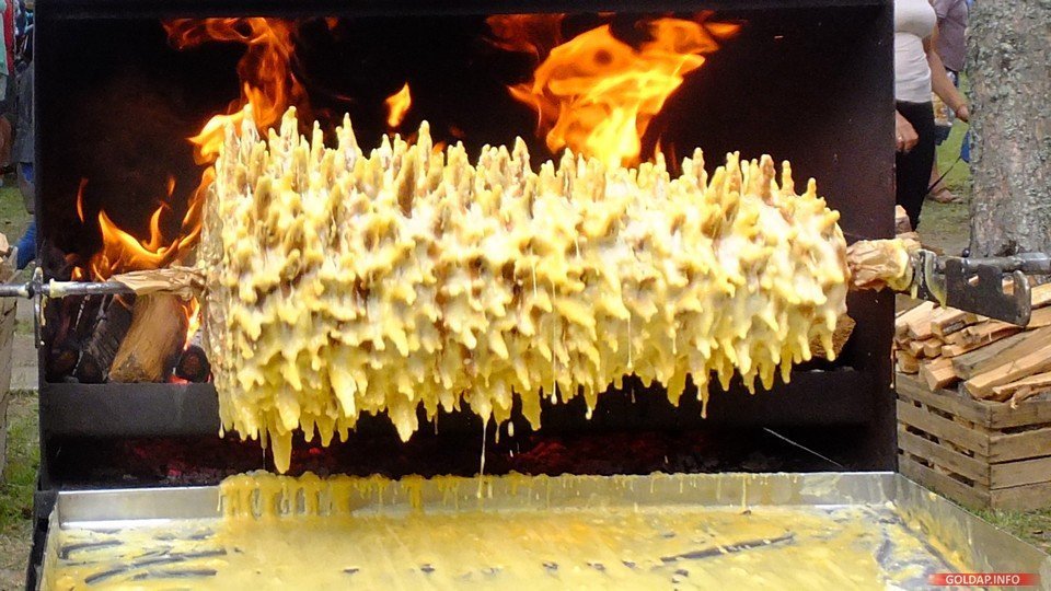 A spit cake shaped like tree rings, baked over an open fire. Ceremonial in Lithuania and Podlasie.