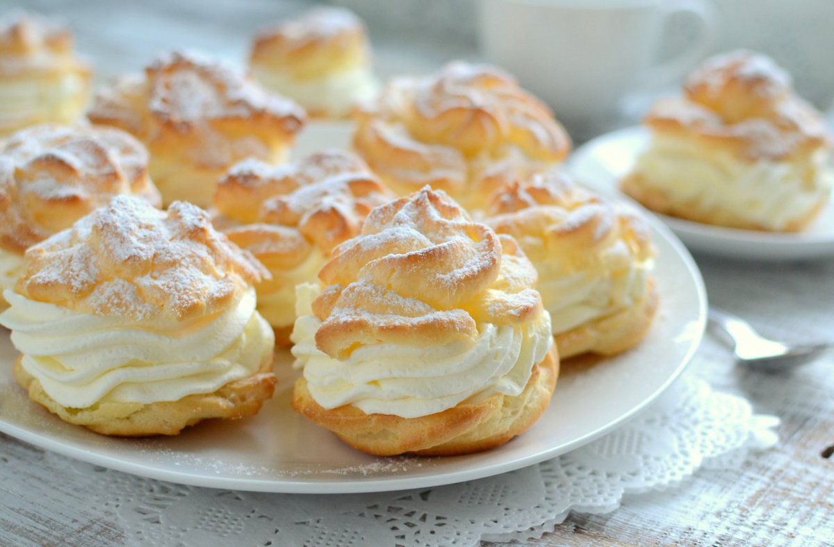 Choux pastry filled with whipped cream or custard. A café staple since the 19th century, alongside coffee.