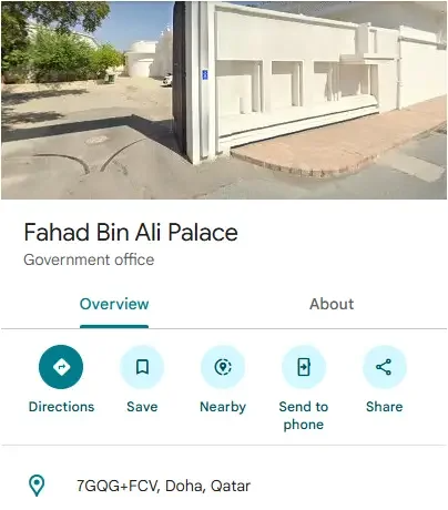 Here’s the Fahad Bin Ali Palace itself, listed as a government office in Doha.