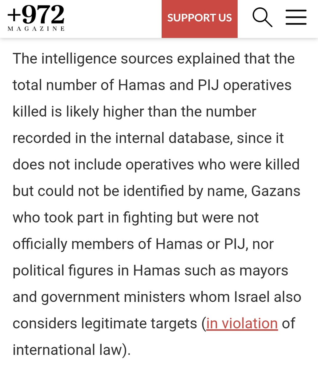The list also doesn't include "operatives who were killed but could not be identified by name, Gazans who took part in fighting but were not officially members of Hamas or PIJ, nor political figures in Hamas...."
