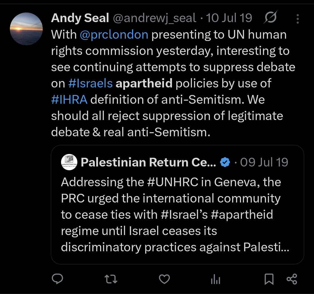 A Senior Lecturer at University College London, Andrew is a fanatical anti-Israel activist who was already crying "genocide" as early as October 28, 2023.