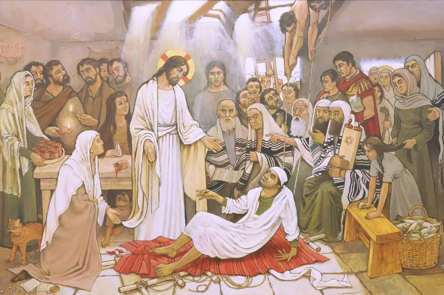 Matthew 9,5-7: “Which is less trouble to say, ‘Your sins are forgiven’ or ‘Stand up and walk?’ To help you realize that the Son of Man has authority on earth to forgive sins” – he then said to the paralyzed man – ‘Stand up! Roll up your mat and go home.’ The man stood up and went toward his home.”