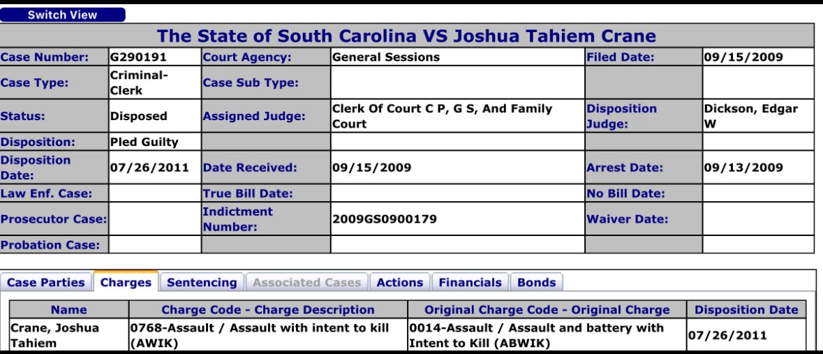 Joshua Crane’s court documents that @FFAFamily was able to pull for me. I appreciate her hard work in this matter! Give her a follow! She is number 1 on my team.