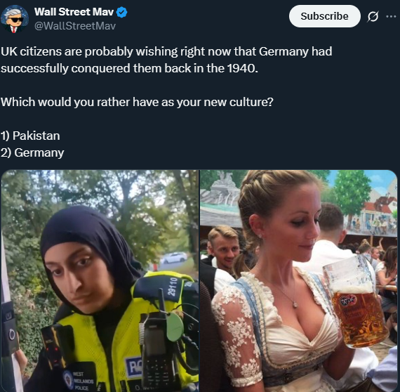 With the situation in Britain, many grifters have taken the opportunity to push literal Nazi propaganda on a furious populace. The argument is "Your culture would have been left alone by Germany"