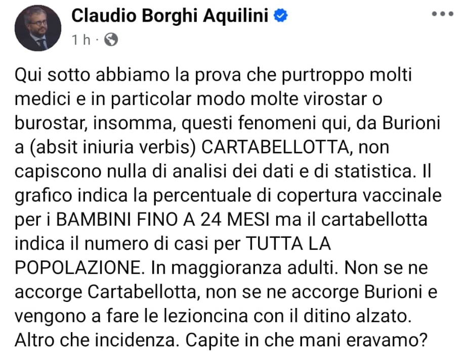Ieri abbiamo assistito all'ennesimo ridicolo assalto di #Borghi a #Cartabellotta e #Gimbe.