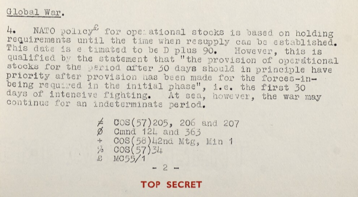 NATO by contrast assumed that stockpiles were needed for 90 days conflict, and that by D+90, reinforcements and fresh supplies were on the way to the battlefield. It wasn't assumed that widespread nuclear release would have happened at this point.