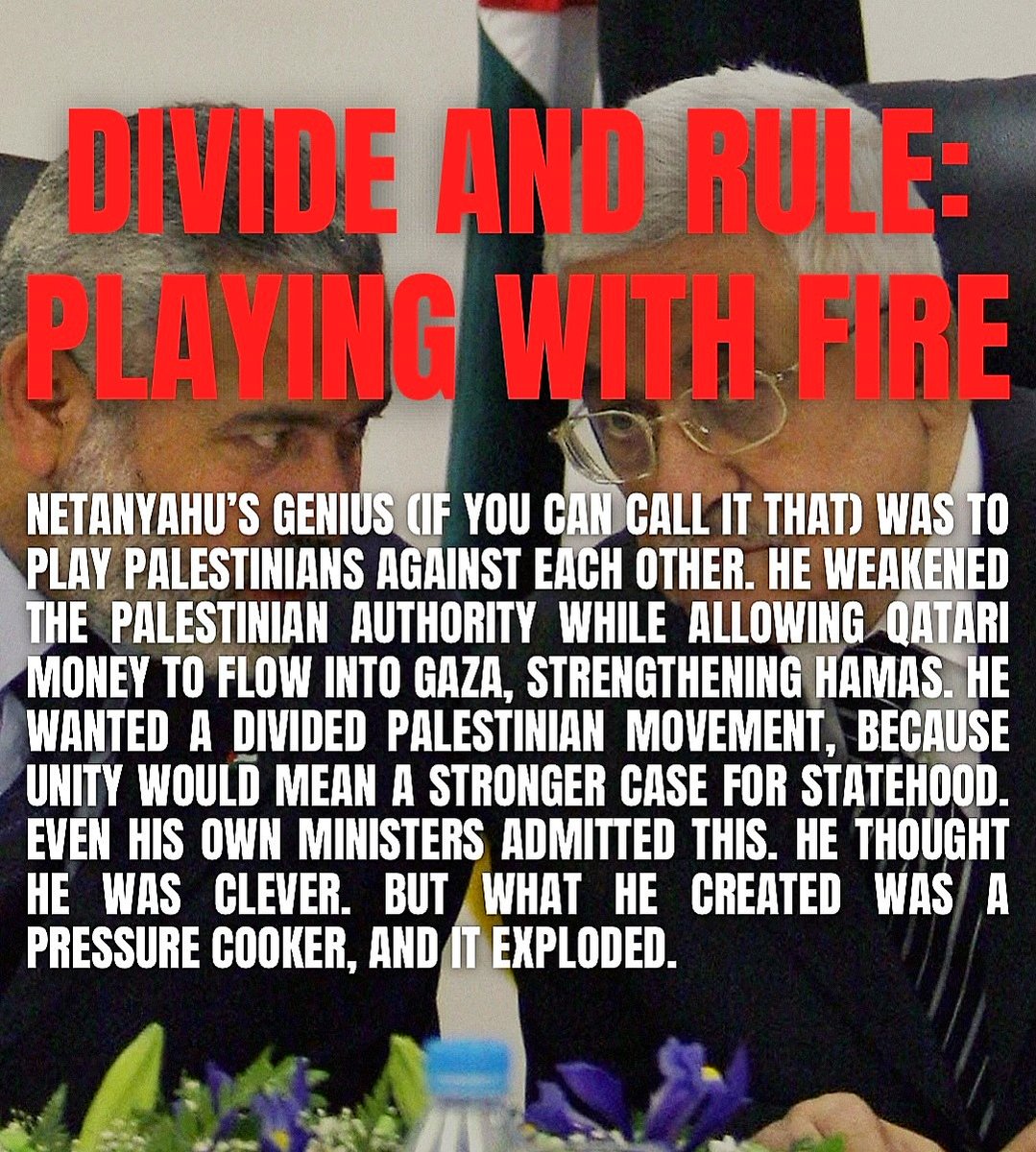 Since 2007 Netanyahu has turned Gaza into the world's largest open-air prison,which has been systematically bombed every few years ( 2008,2012,2014,2021), carrying out its machiavellian policy called "cutting the grass" 3/9