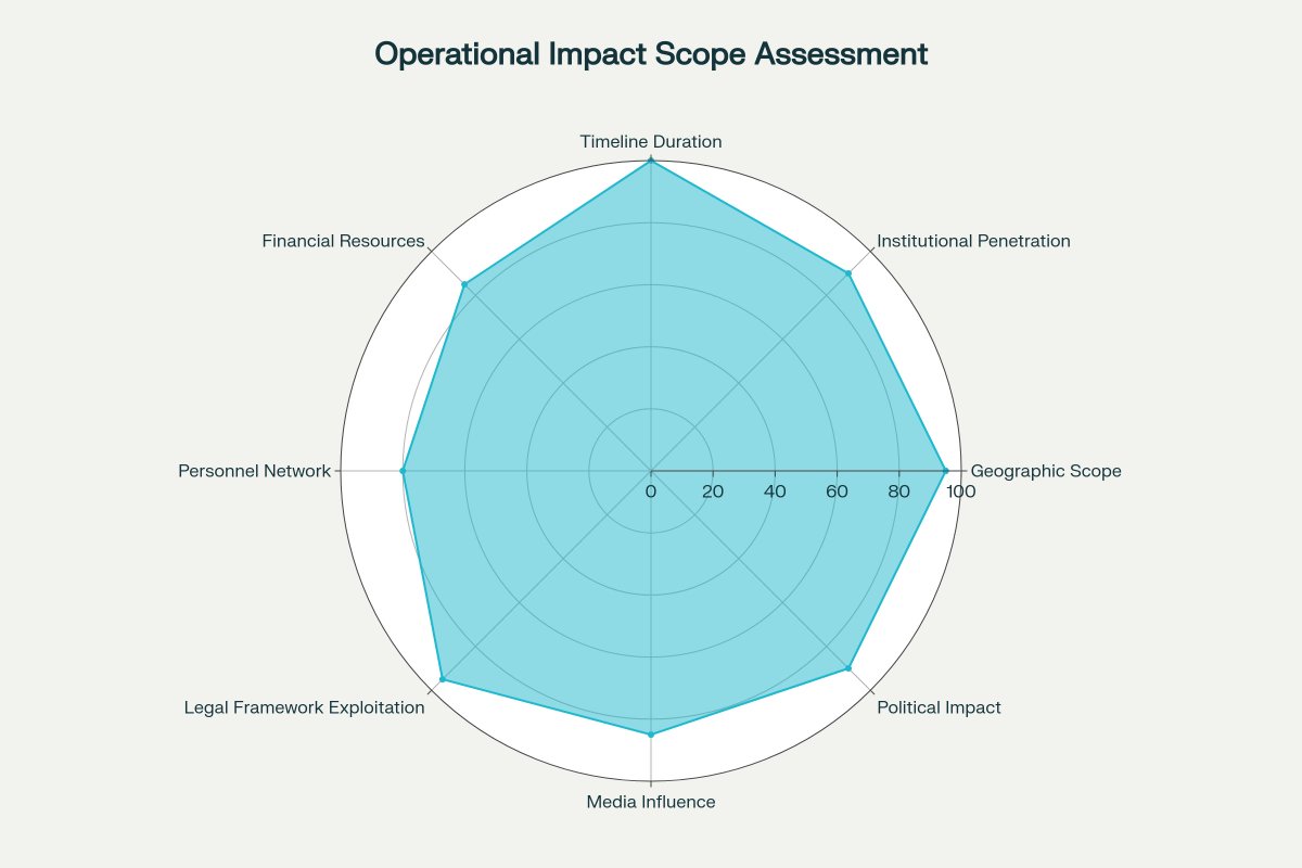 Maximum impact documented in Timeline Duration (52 years continuous), Legal Framework Exploitation & More.