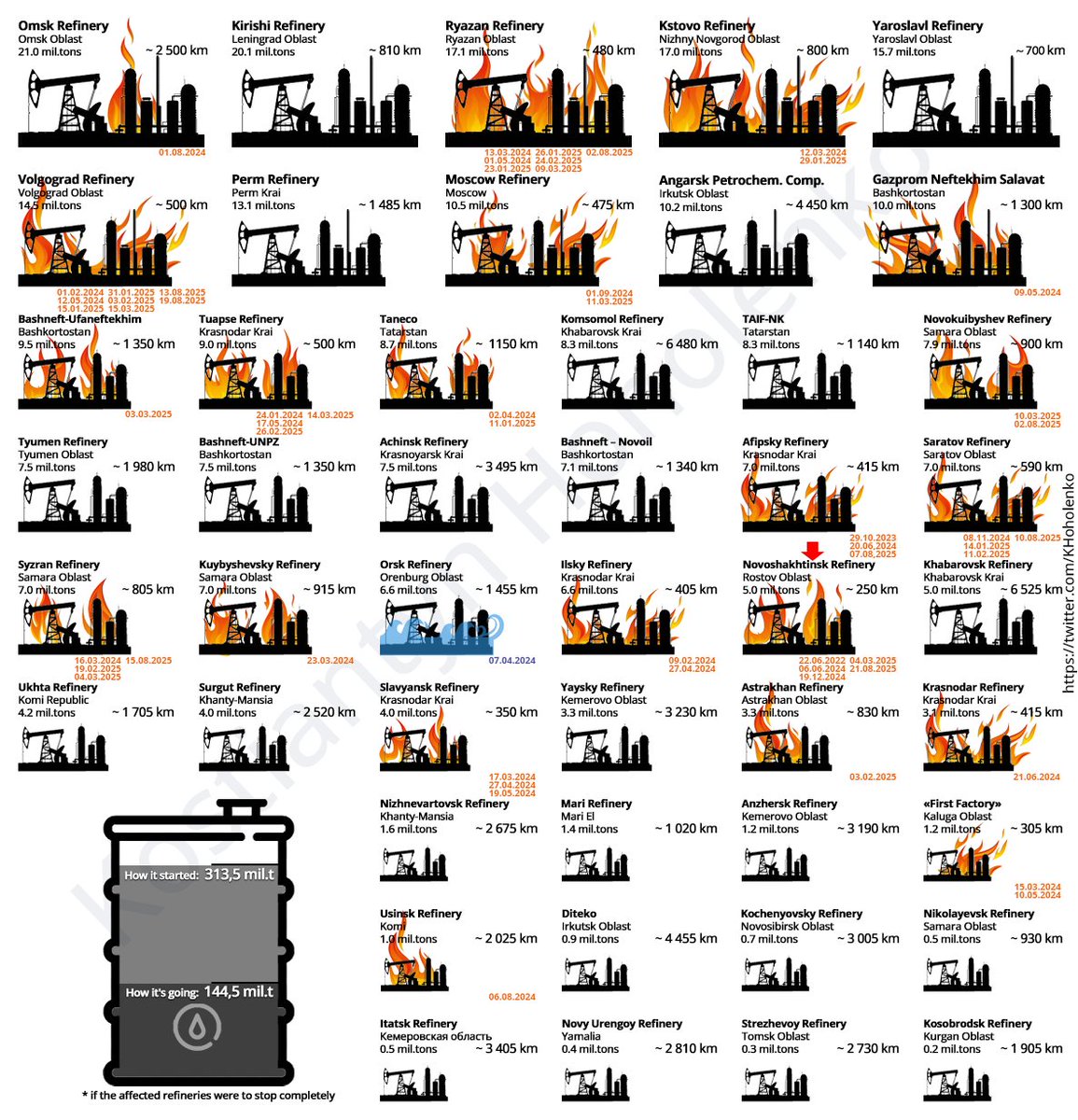 โฝ๏ธRussian oil refineries/gas pipelines hit in a week: