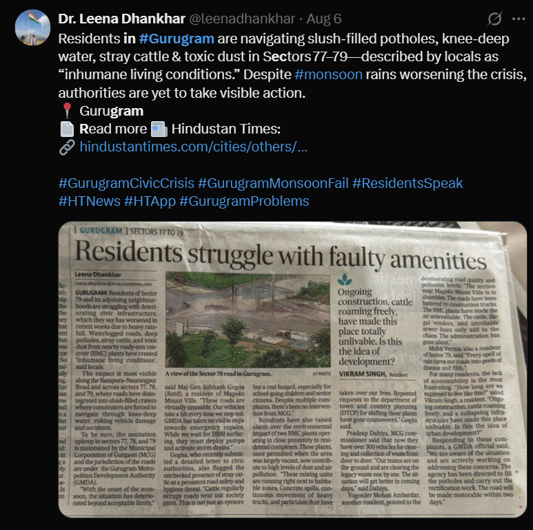 12. Dear @MunCorpGurugram, this is not just feedback, it’s a demand. With the kind of global companies setting up offices here, taxpayers deserve world-class infrastructure, not potholes and chaos. Start valuing taxpayers’ lives and give them a city they can live in peacefully🙏.