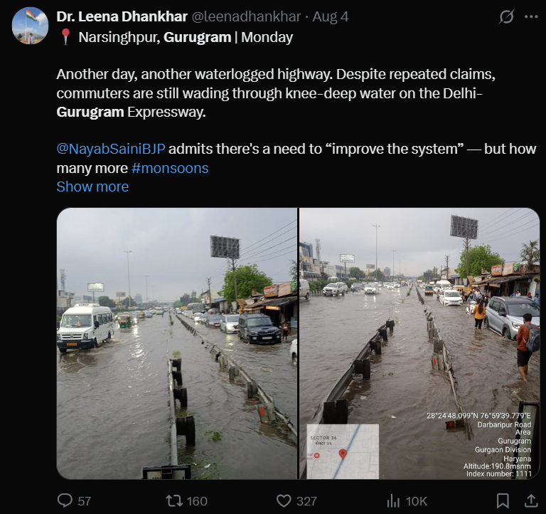 2. Roads filled with potholes. Drainage a joke. Power failures routine. Gurgaon, home to Fortune 500 offices, is run more by private players than government. A city built by money, destroyed by misgovernance.