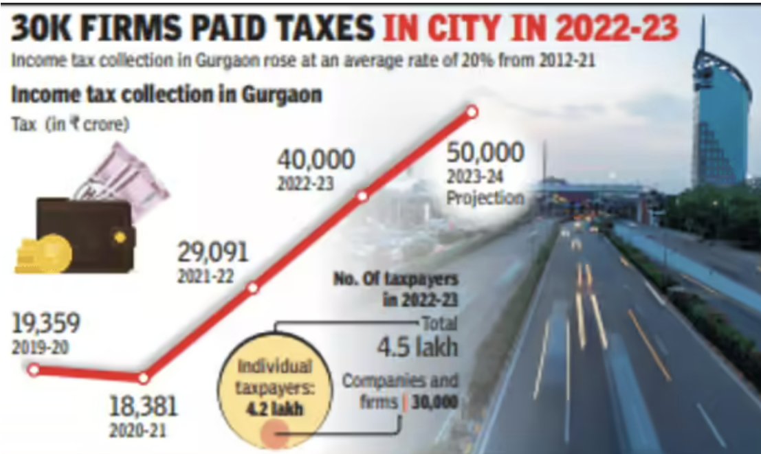 1. Gurgaon contributes nearly ₹40,000 cr in income tax (FY23), projected to hit ₹50,000 cr soon. Yet, the city’s infrastructure looks like a neglected village. Where is all this money going?