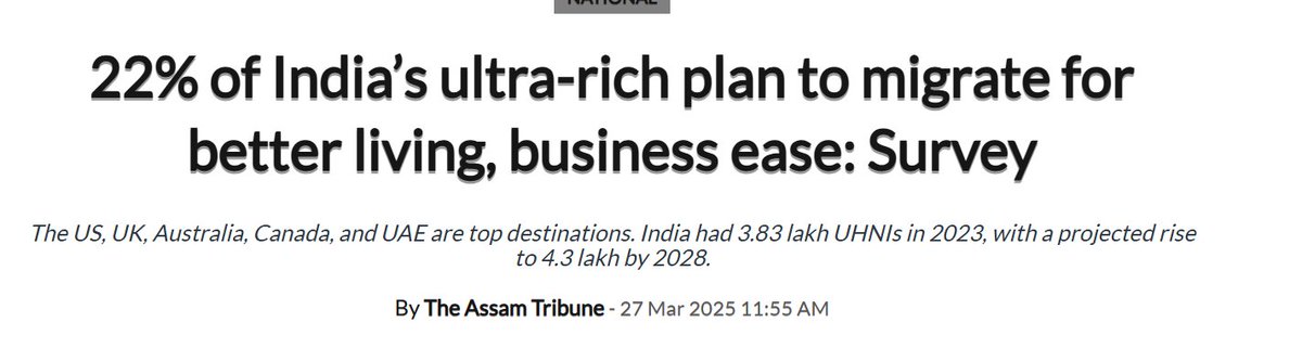 6. This isn’t rare. Reports show 22% of ultra-HNI Indians plan to leave India, citing taxes, corruption, poor infrastructure. Brain drain + wealth drain = recipe for disaster.