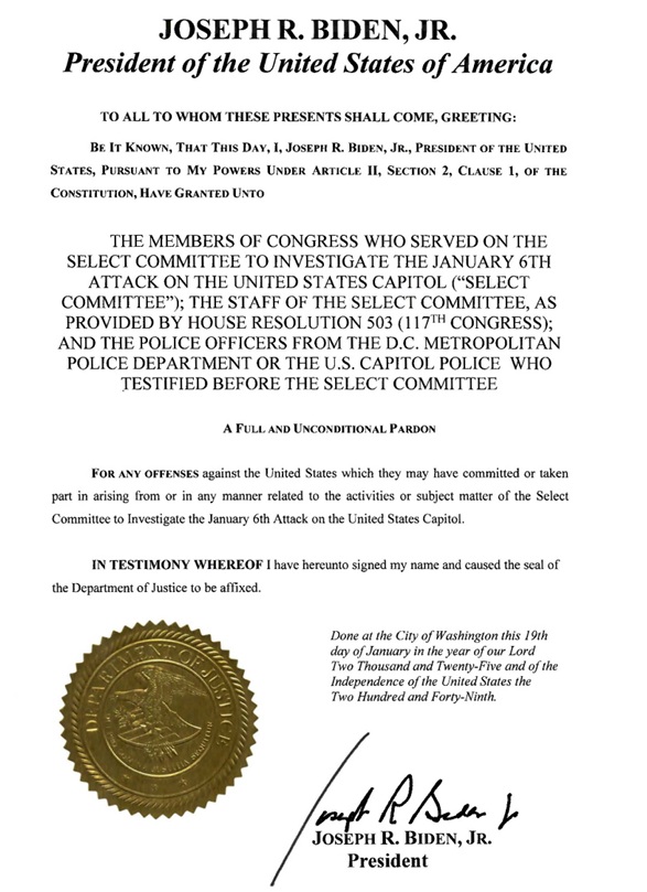 3/ .."I am exercising my authority under the Constitution to pardon General Mark A. Milley, Dr. Anthony S. Fauci, the Members of Congress and staff who served on the Select Committee, and the U.S. Capitol and D.C. Metropolitan police officers who testified before the Select Committee."...