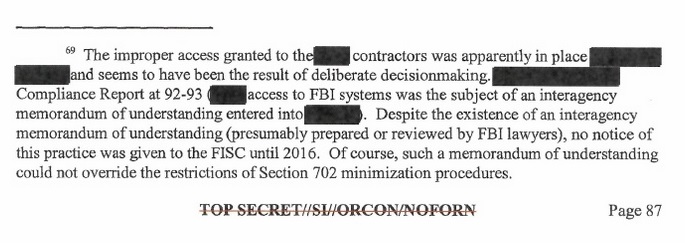 Declassify the Rosemary Collyer 99-page FISA report and outline the FBI contractors doing the surveillance.