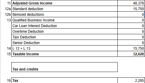 Running the numbers, he'd only owe ~$2,285 in federal taxes in 2025.