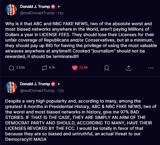 ๐ฅ Trump hinting to revoke license (s) for Fake News!