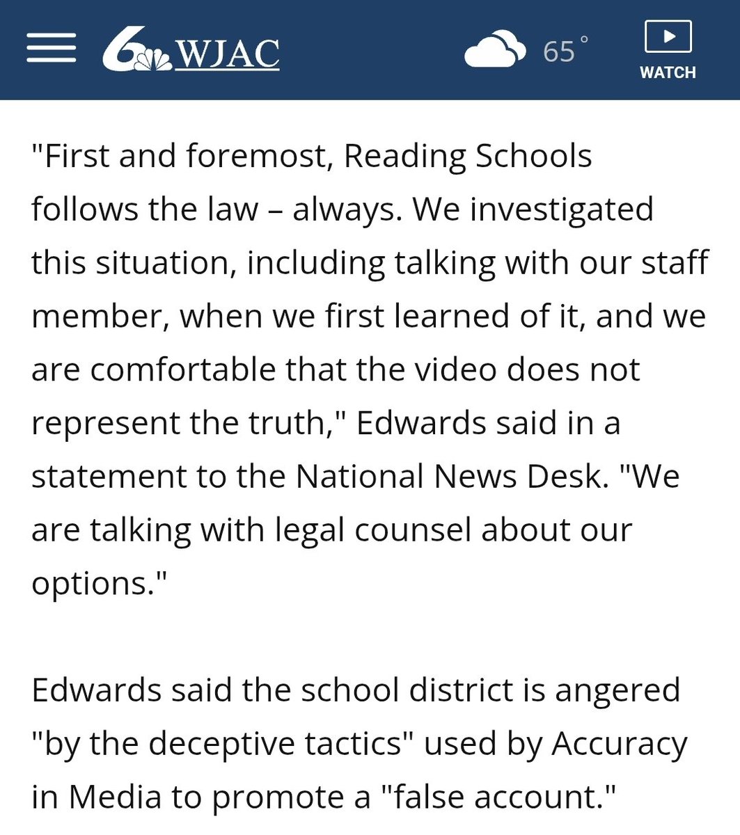 @ReadingCSD Mark Edwards said journalists "attempt[ed] to lure our staff member into saying anything that will fit AIM’s agenda and then edit[ed] the video in a manner that removes the context of the conversation and, most of all, helps that organization get online viewership"
