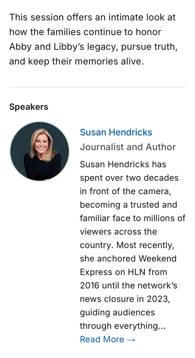 This powerful session will explore how the families continue to fight for truth, remembrance, and justice—while carrying forward the legacies of Abby and Libby.” #CrimeCon #CrimeCon2025