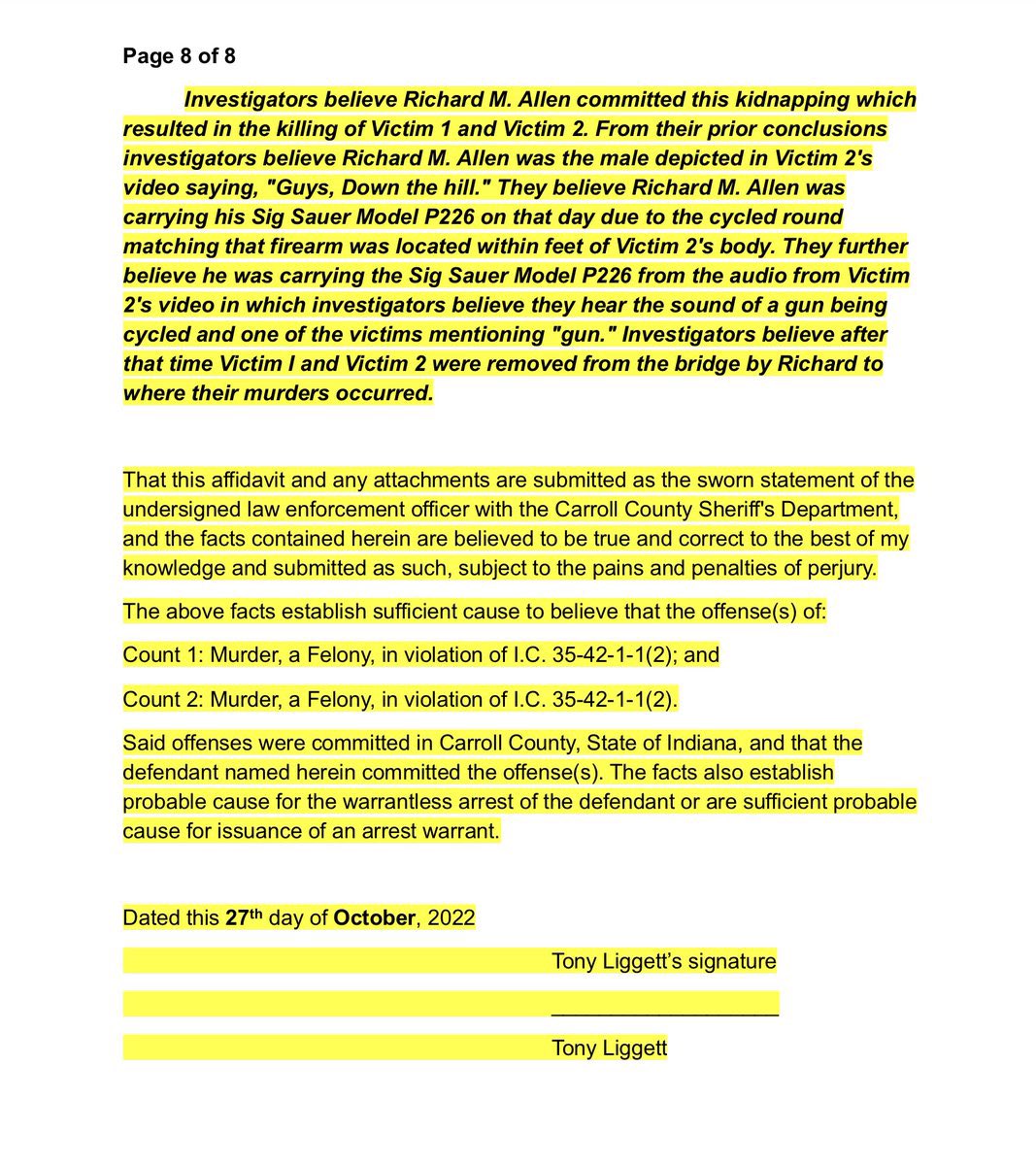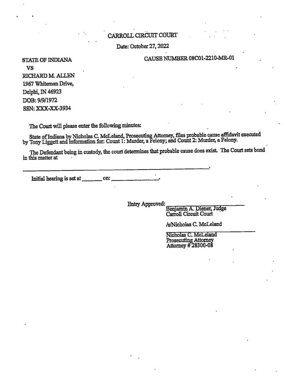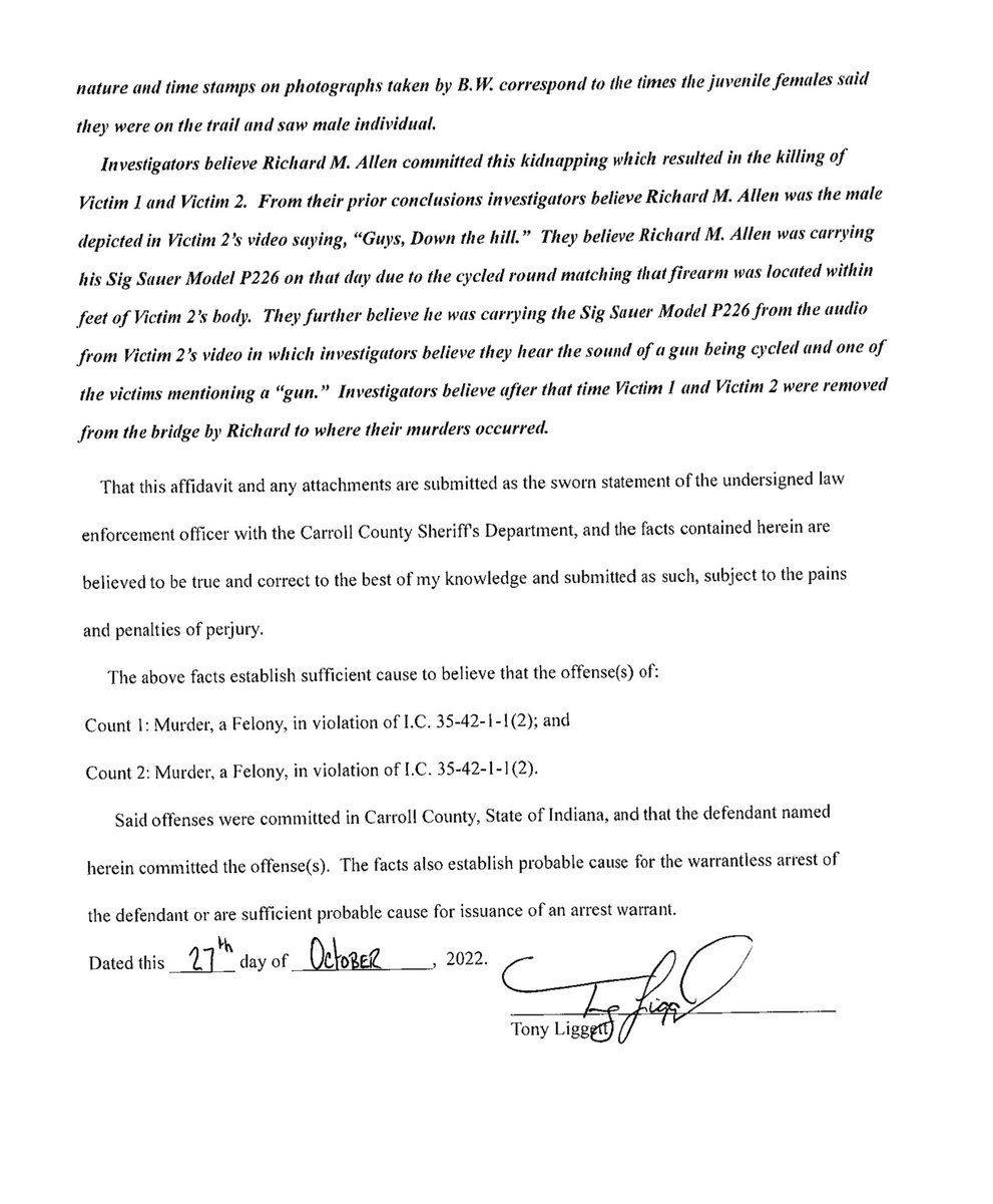 #2🧵Pages 1-4 of unredacted #RichardAllen probable cause affidavit (PCA) dated Oct. 22, 2022. #PCA #Page8Gate #Delphi #DelphiMurders #DelphiTrial #RichardAllenTrial
