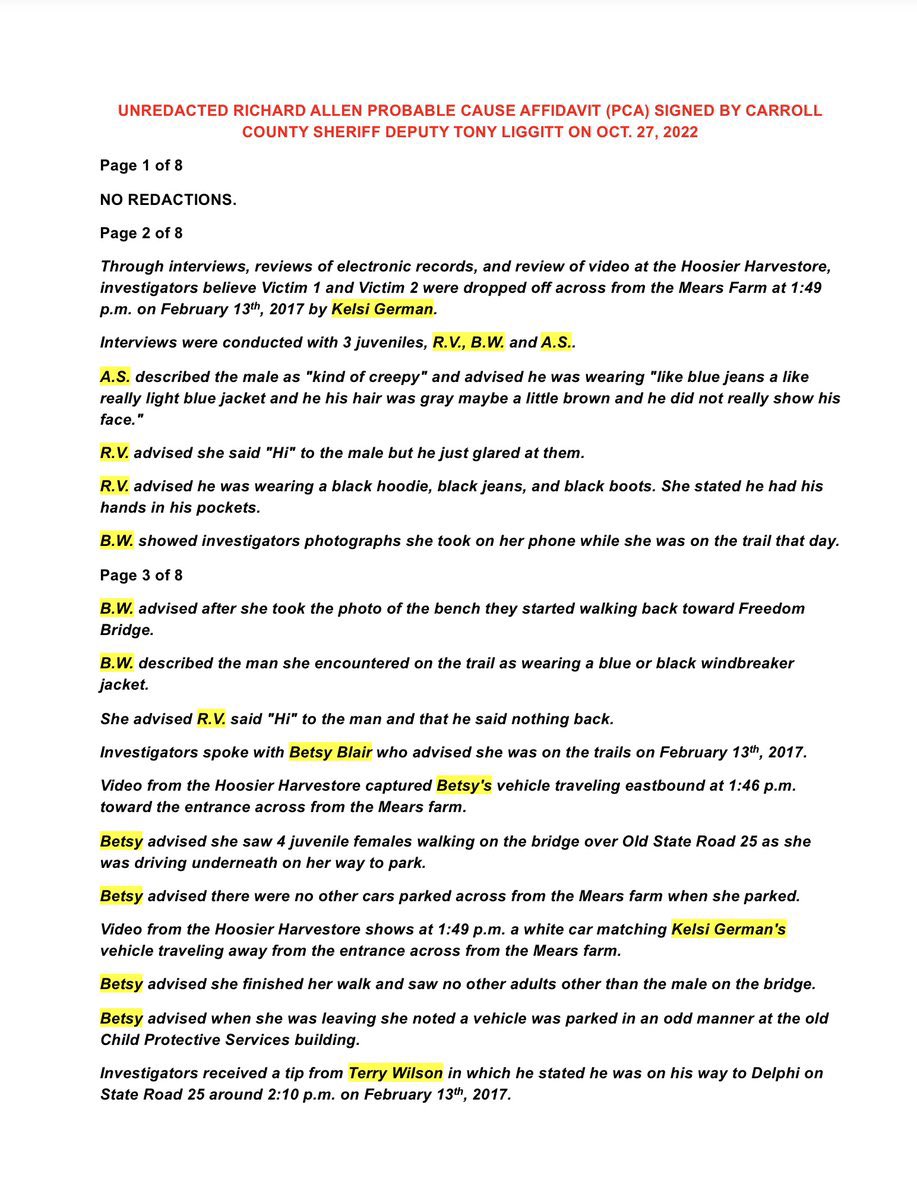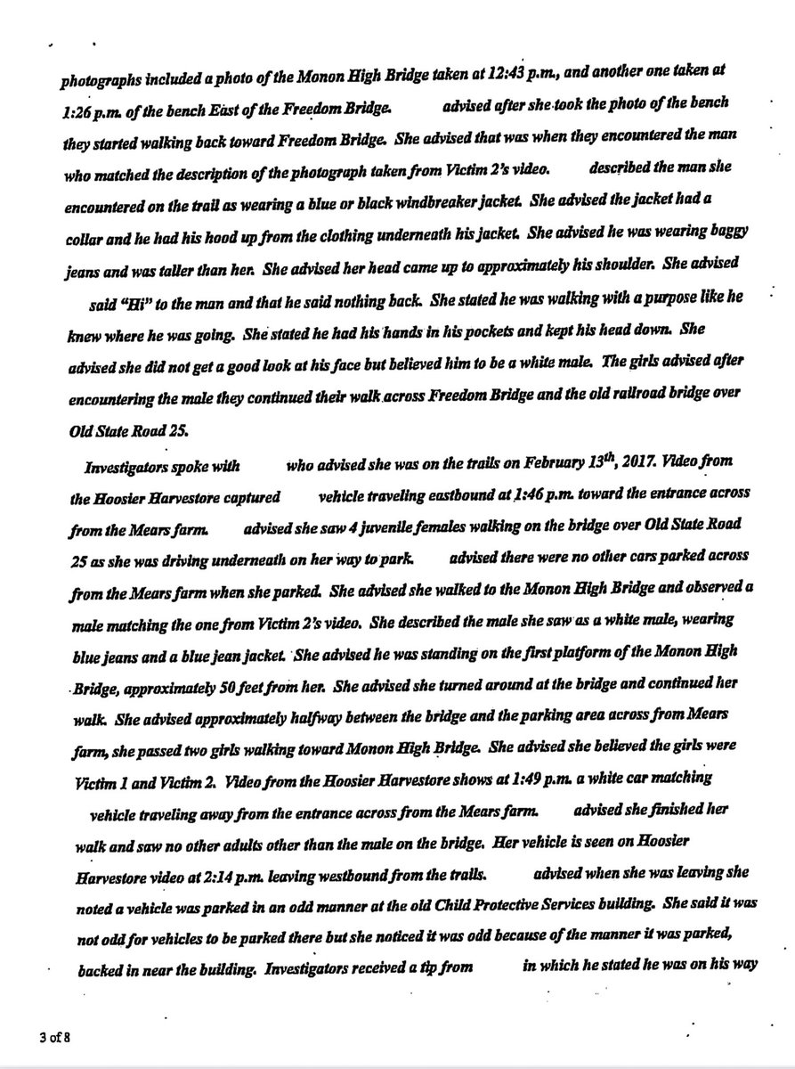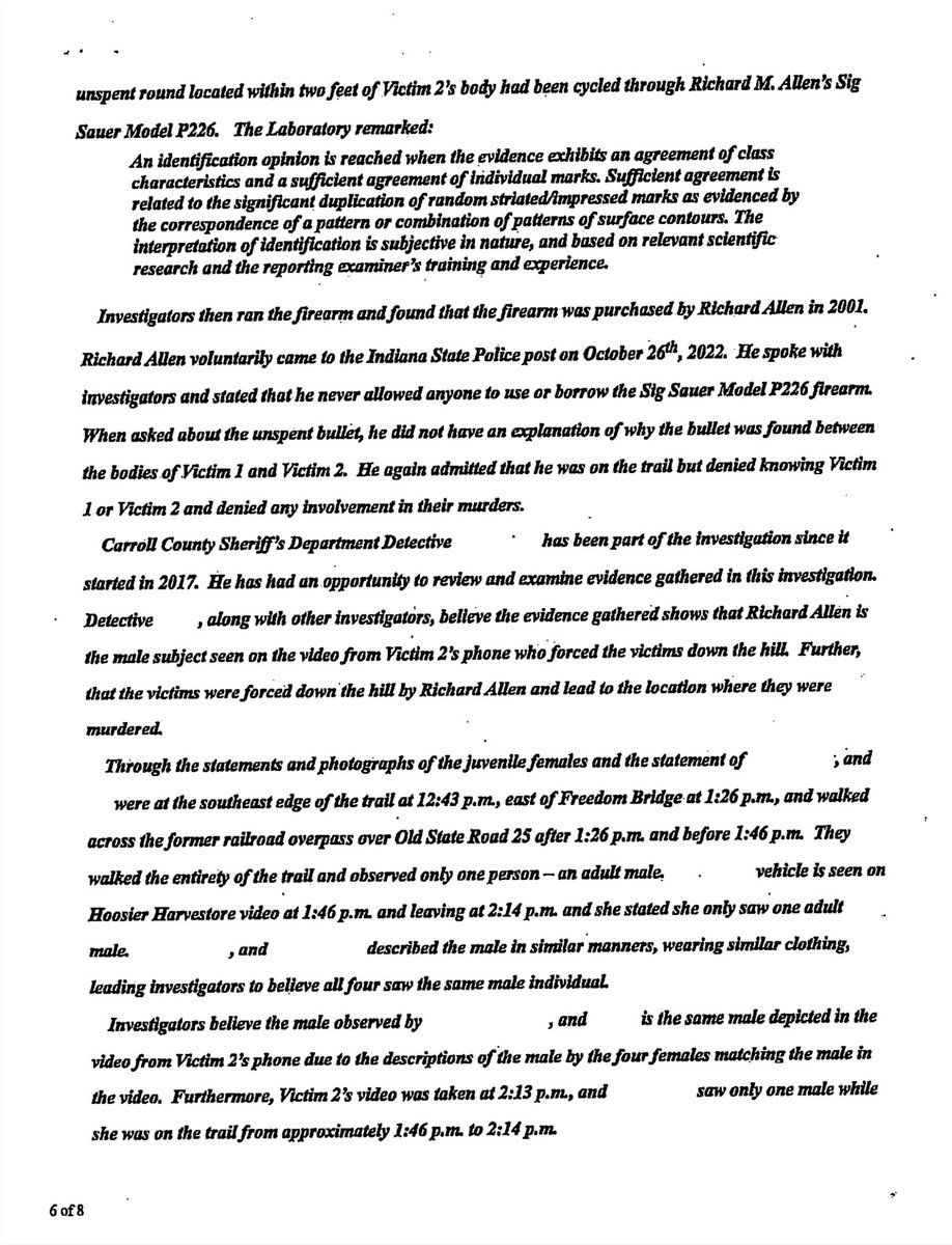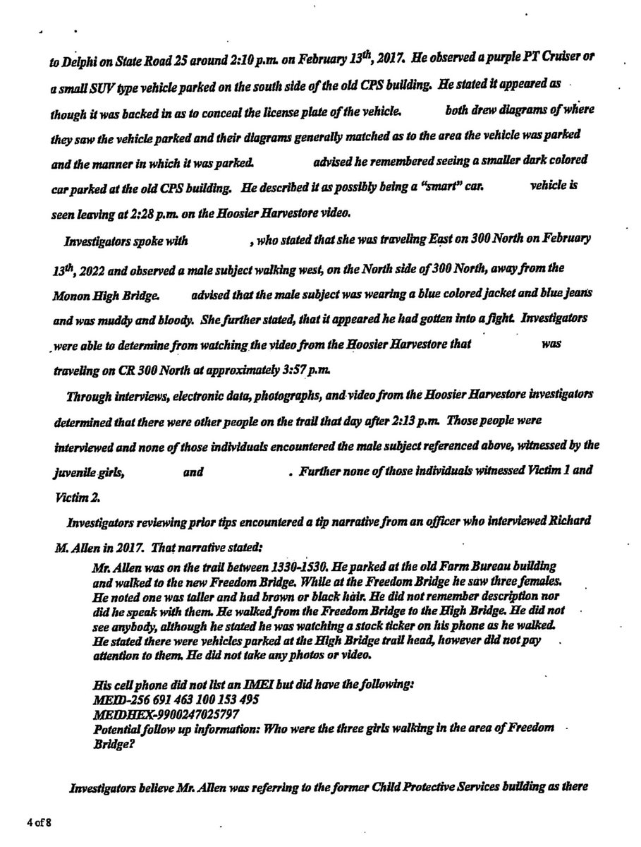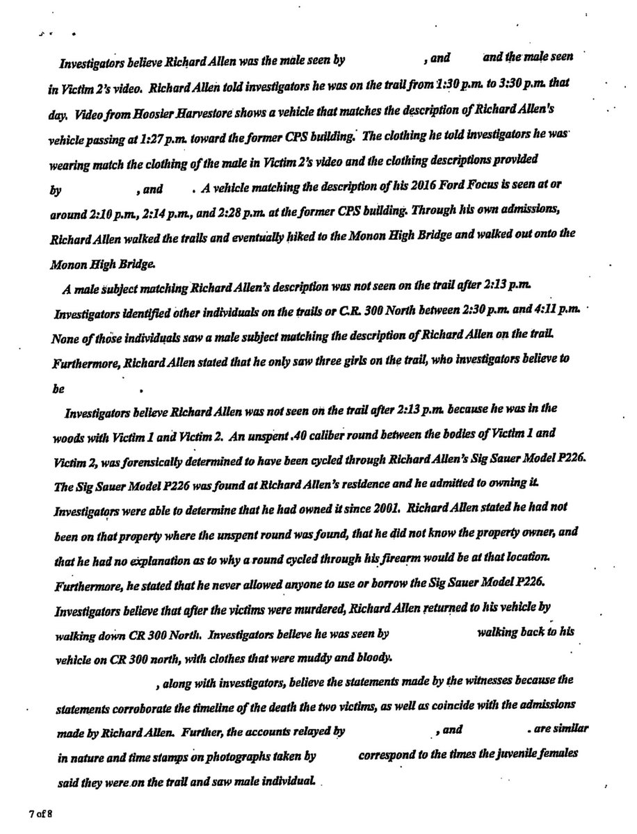 @fien_X #7🧵Pages 5-8 of the state’s redacted copy of #RichardAllen’s probable cause affidavit (PCA). #PCA #Page8Gate #Delphi #DelphiTrial #RichardAllenTrial