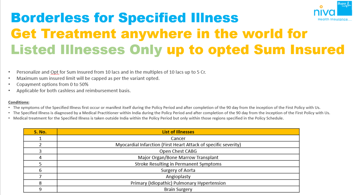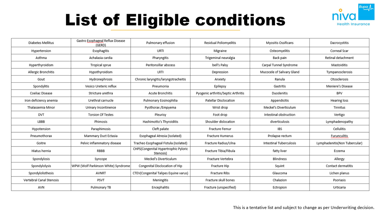 It also covers around 145 conditions covered from Day 1 if you choose to pay loading i.e. extra premium (check below image for the list of PEDs)