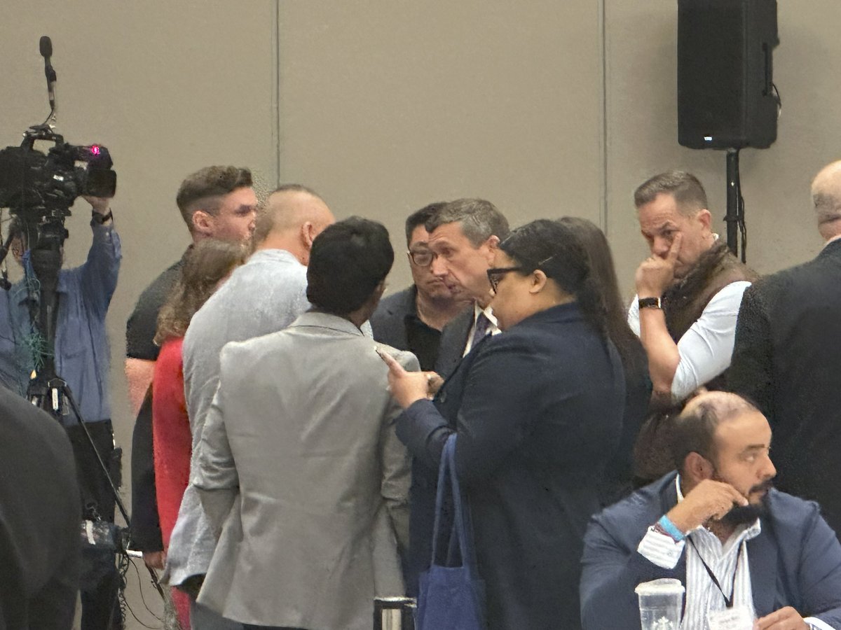 "93% of Democrats, you gotta be fuckin' kidding me," says one spectator leaving the room.