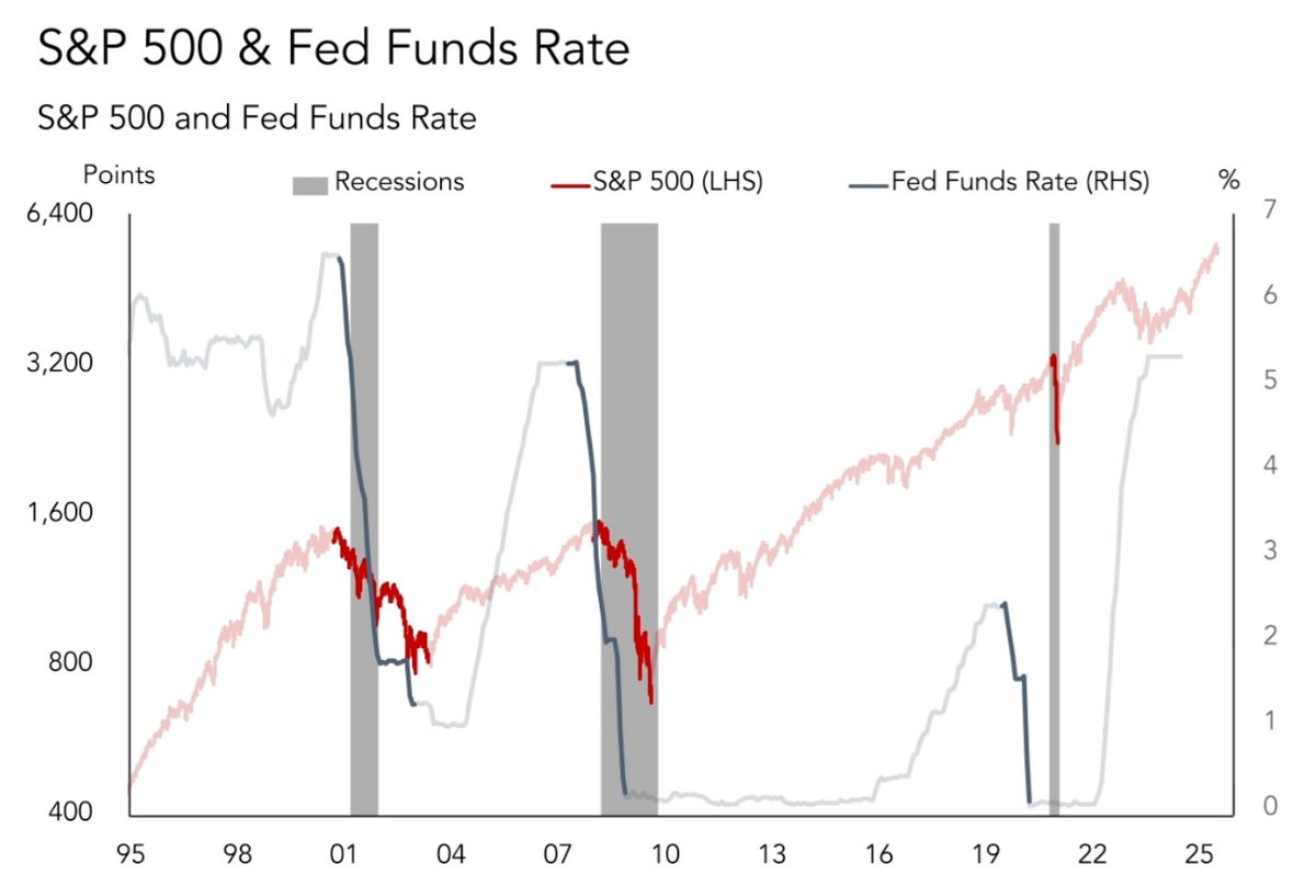Normally, the Fed cuts after a market crash, dot-com (2001), housing (2008), pandemic (2020).