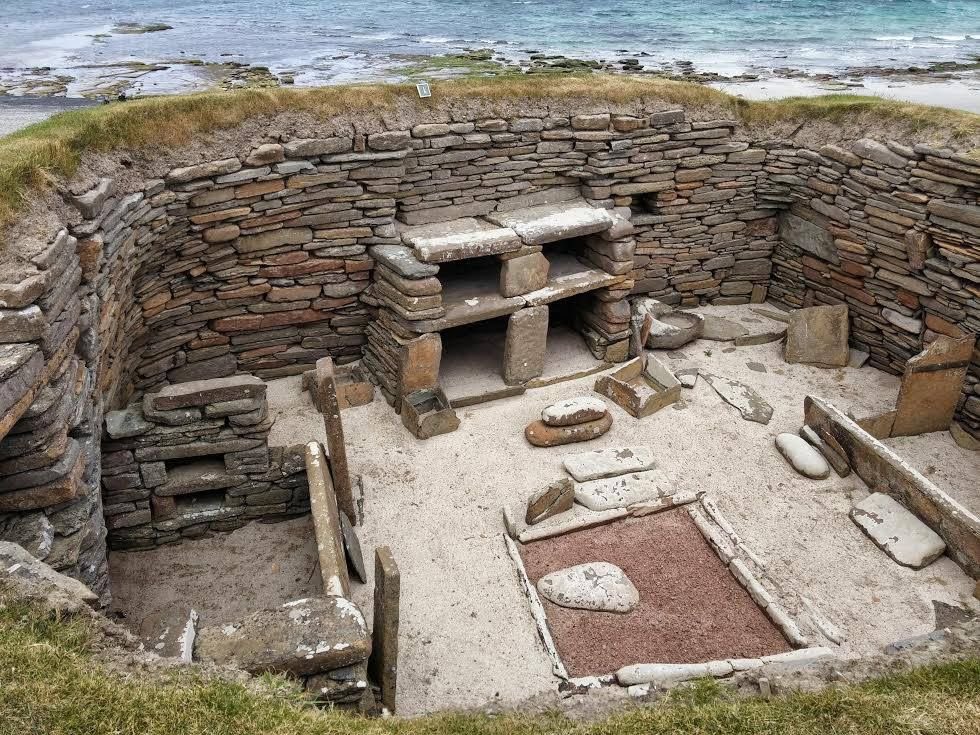 Located in the Bay of Skaill on the Orkney Islands, Skara Brae was discovered in 1850 but a full excavation did not take place until much later, after the site was plundered for an unknown quantity of artefacts and damaged by storm.