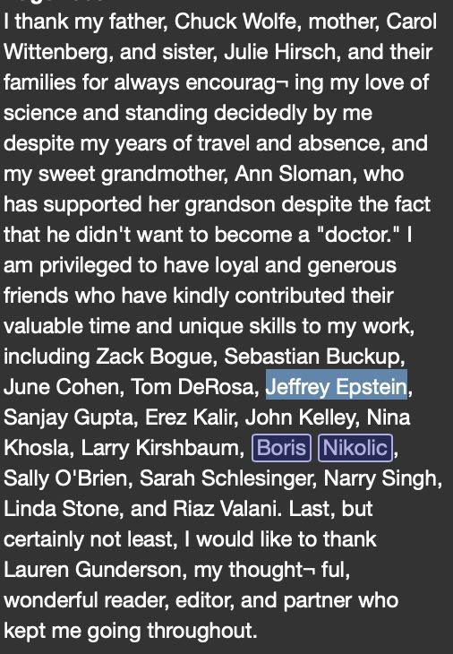 NOTE:- In his book he thanks none other than JEFFREY EPSTEIN.