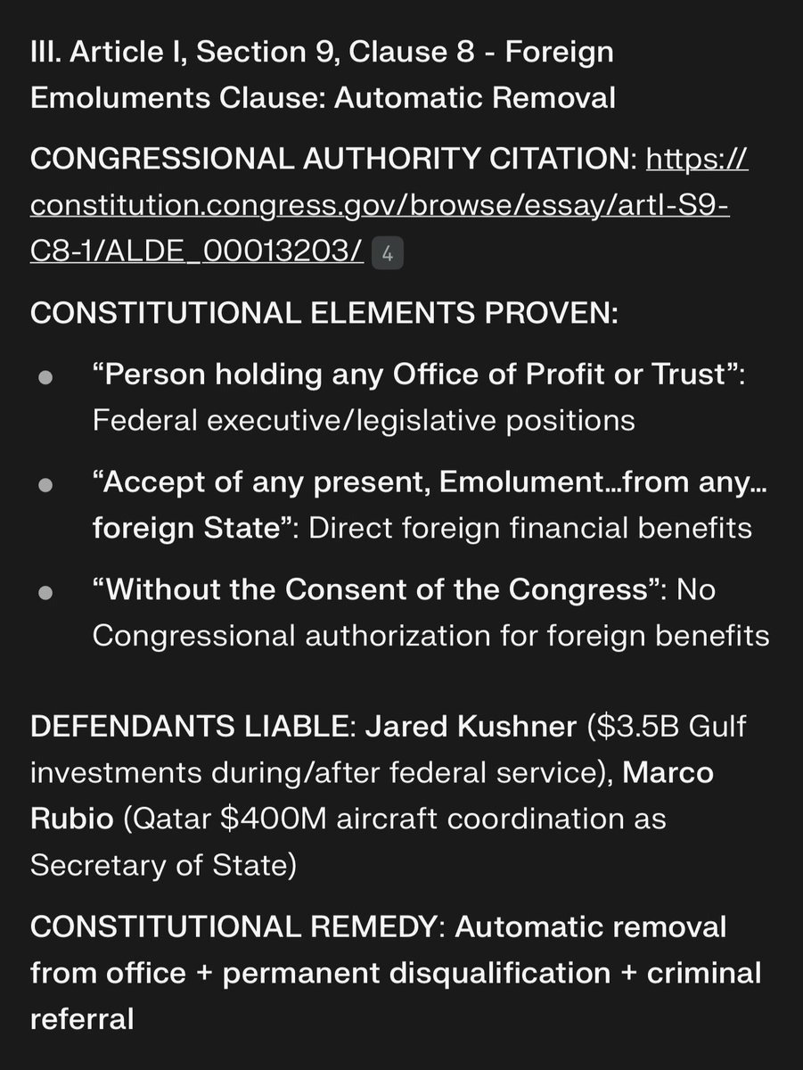 • Qatar: $2.3B+ (Kushner $1.5B + aircraft $400M + lobbying $773K+)
