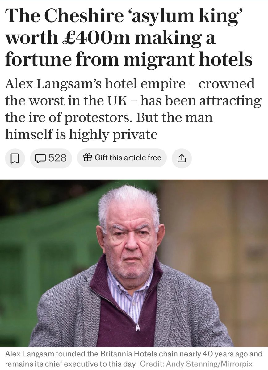 Don’t forget subcontractors like Britannia Hotels, owned by Alex Langsam, which has pocketed £150m since 2020 by turning 17+ hotels into asylum accommodations.