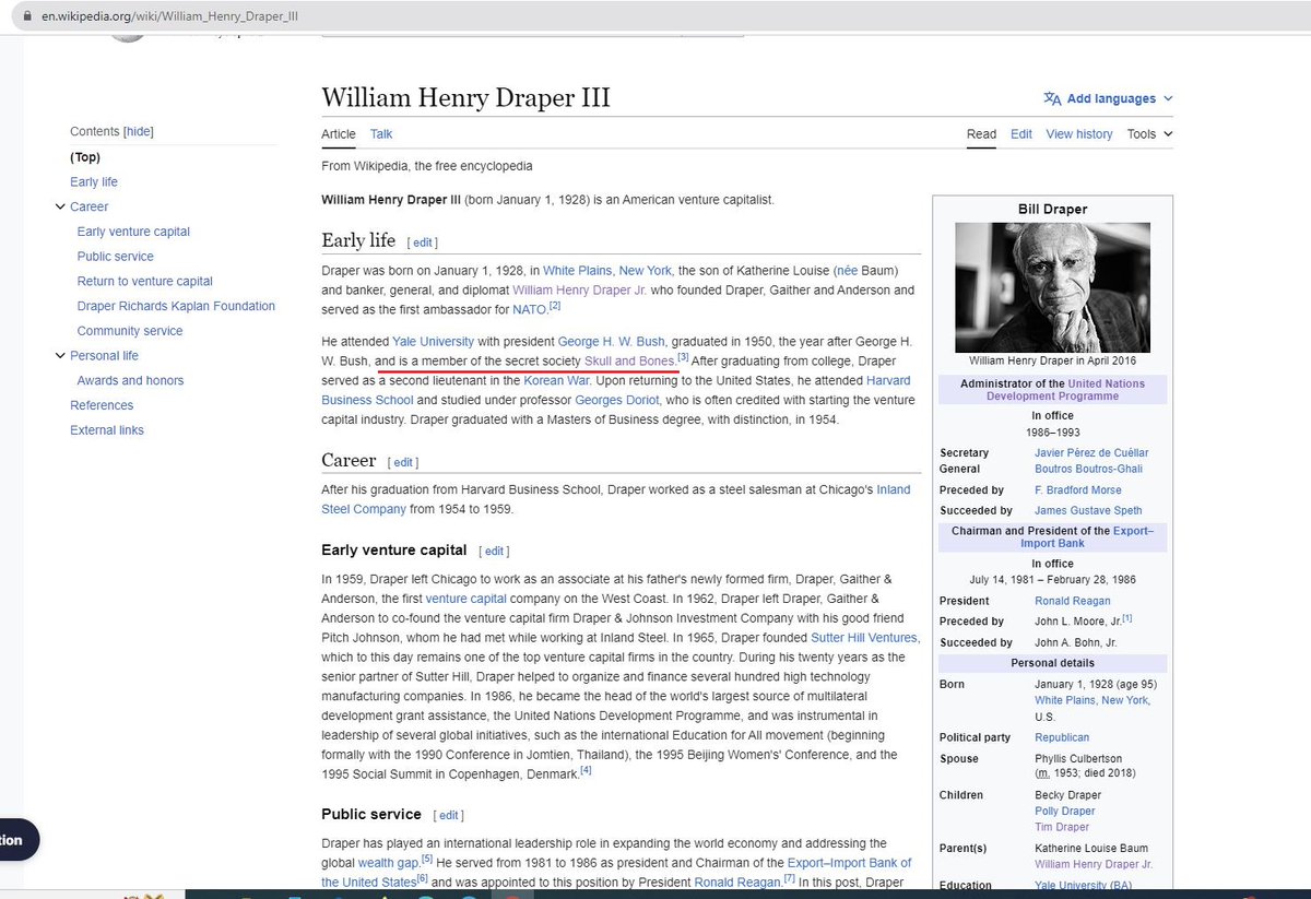 8. By the way, William Henry Draper III was a member of the elite secret society Skull and Bones, which included President Bush and many powerful people.