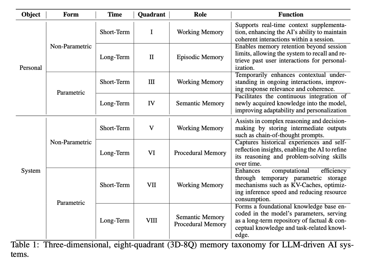 Episodic → Non-parametric, long-term (e.g. your preferences in a DB).