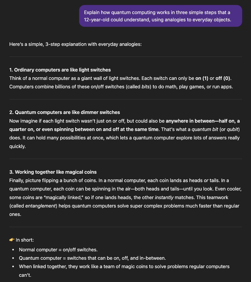 AI thrives on structured guidance. Instead of "Explain blockchain," try "Explain blockchain in three simple steps suitable for beginners."
