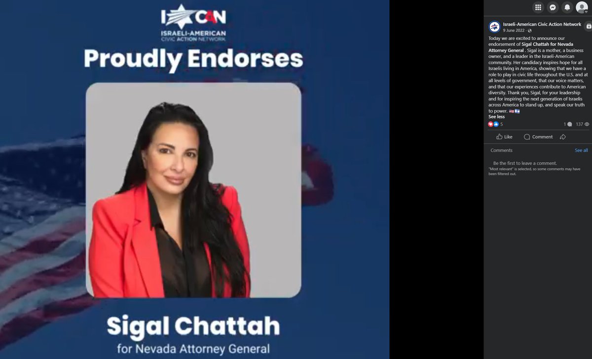 If it were just anyone commenting on her post, it might not be a big deal. But he commented on Dillon Hosier's post--and he's quite close to Sigal Chattah. In fact, she cofounded the Israel-American Civic Action Network with her. Apparently, this is like another AIPAC.