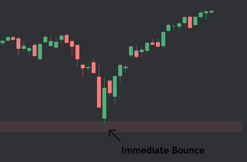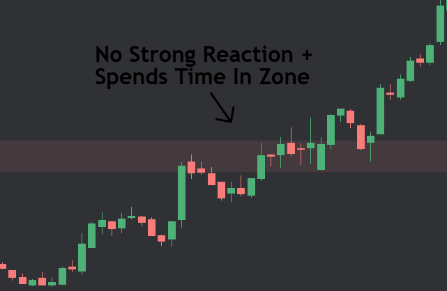 When price bounces or rejects, we want it to be swift and strong. That means an immediate move paired with a strong candle close in favor of your bounce/rejection