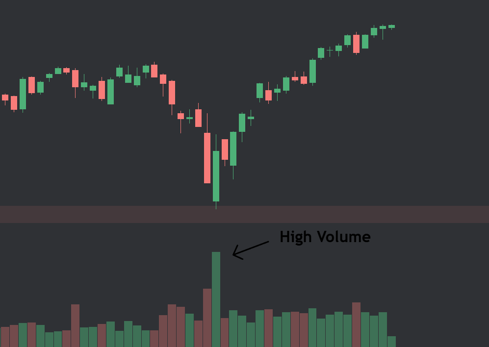 High volume shows the sentiment creating the bounce/rejection has real volume to continue this reversal