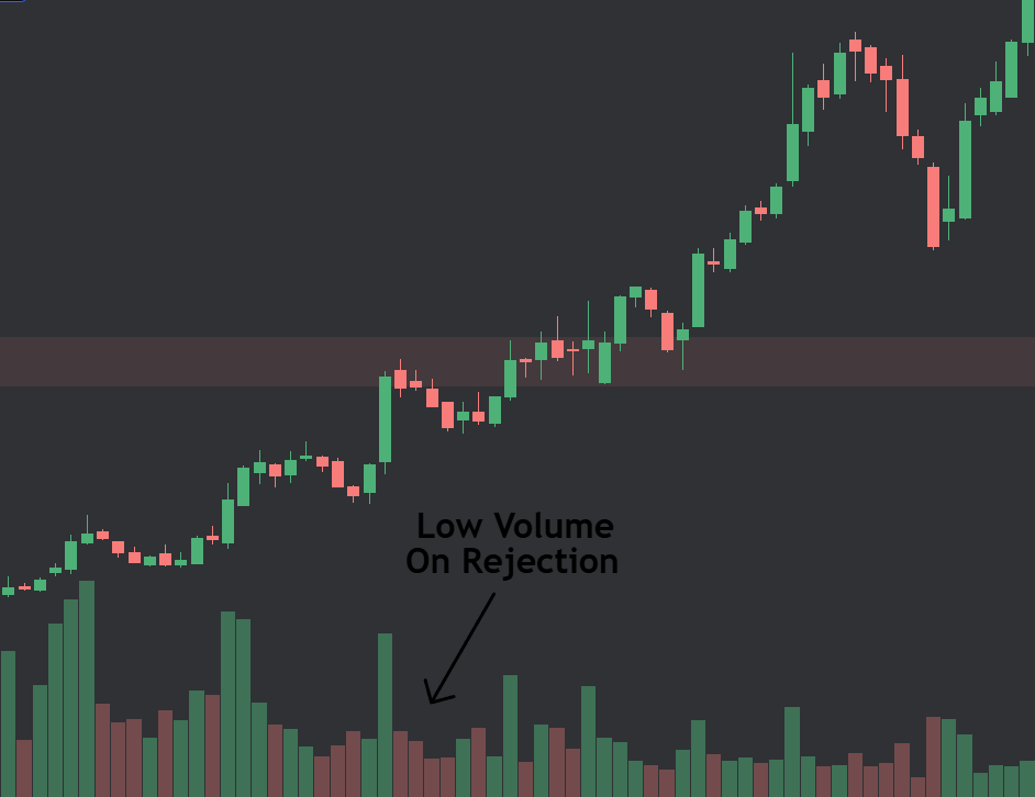A weak reaction paired with unfavorable volume indicates this bounce/rejection could be weak & fake (a pullback)