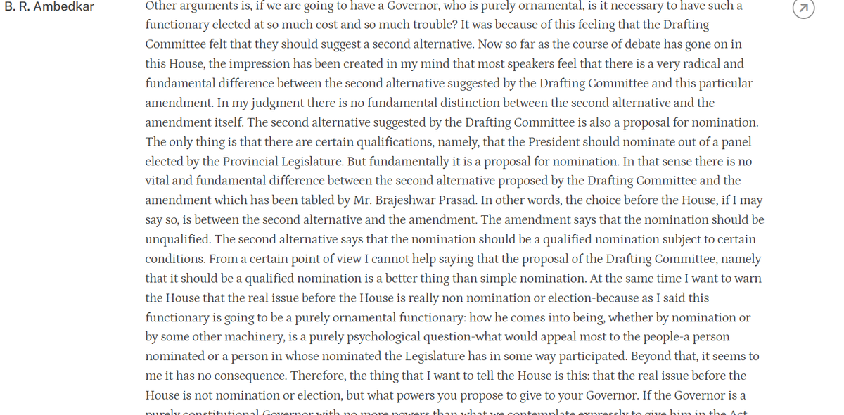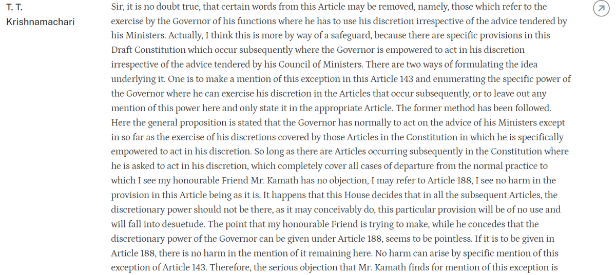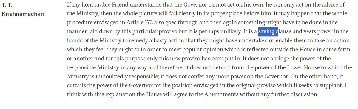 @rashtrapatibhvn @DrAMSinghvi Singhvi: there are three options- this discussion of discretion arises in second and third option- Ambedkar says that in responsible government, there can be no room of discretion for Governor. The intent is clear.