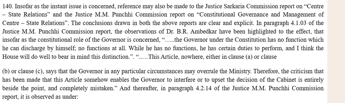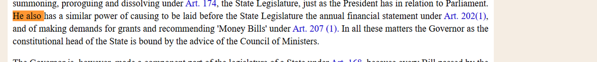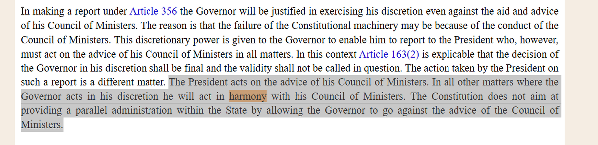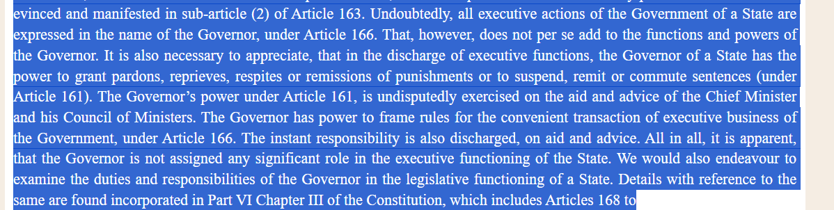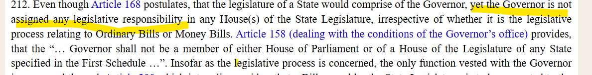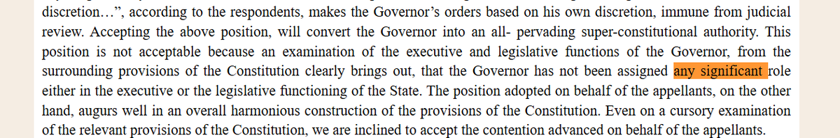 Singhvi (@DrAMSinghvi) : Article 200- 1. the governor and President are titular head functioning within Parliamentary form of government bound by aid and advice and no discretion except where provided