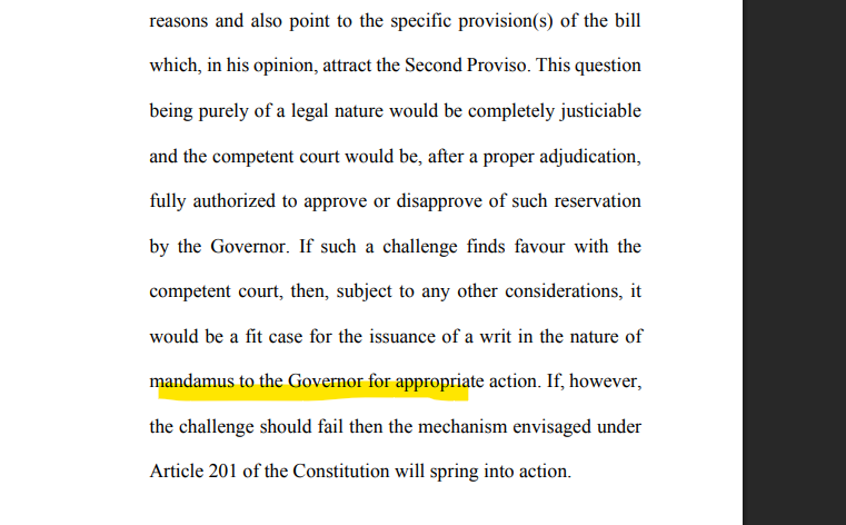 @rashtrapatibhvn The Presidential Reference, made under Article 143, came a month after Supreme Court's judgment in Tamil Nadu Governor's matter, wherein the Court held that the Governor did not act bona fide in reserving Bills to President. It held those bills as deemed assented.