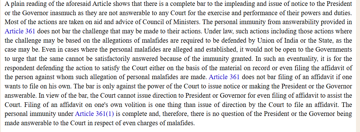 @rashtrapatibhvn SG: In Nebam Rebia, Governor was issued notice and it informed that Article 361 has immunity and the court withdrew the notice saying it should have not been issued