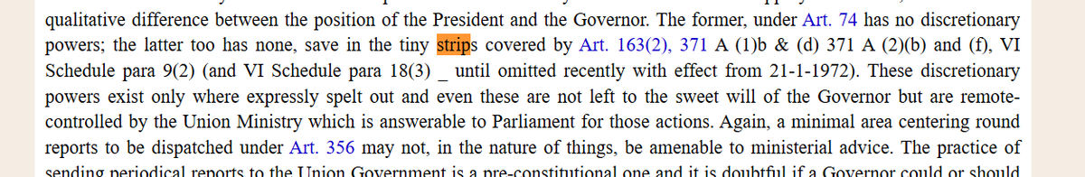 @rashtrapatibhvn @DrAMSinghvi Singhvi: Shamsher Singh accepts deletion of discretion and says "tiny strips" of discretion available for Governor: